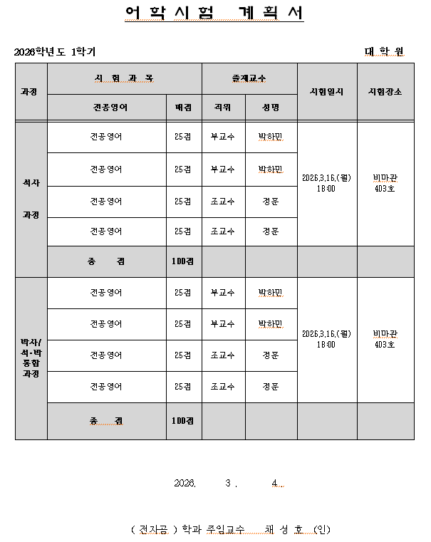 2026-1학기 어학시험 및 종합시험 시행 안내