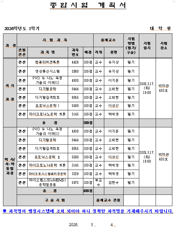 2. 전자공학과 종합시험 일정 및 계획